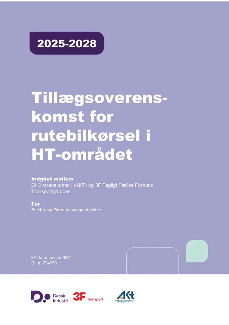Se tidligere: Arbejdsgiverforeningen for Kollektiv Trafik AKT og 3F - Tillægsoverenskomst for rutebilskørsel i HT-området 2023-2025