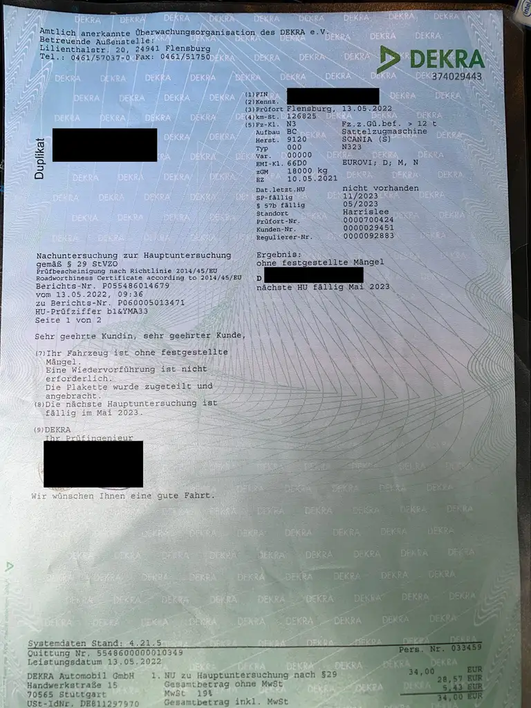 Eksempel på synsrapport - Tyskland (DEKRA)