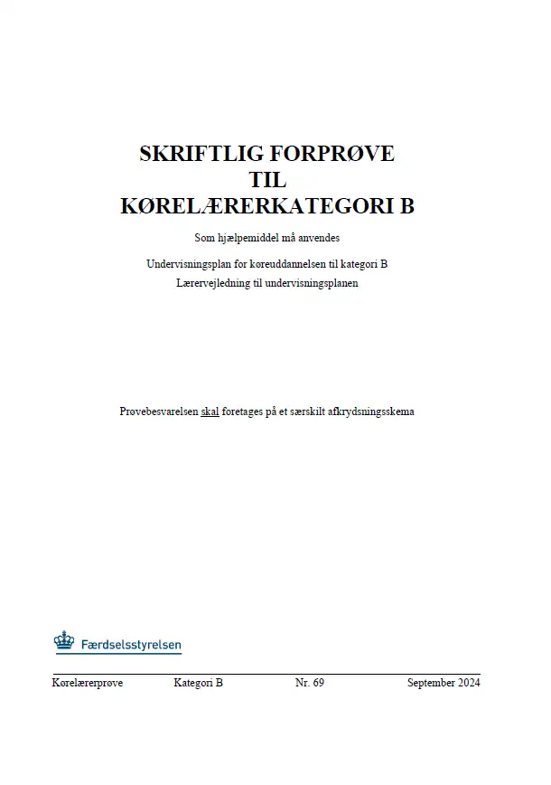Forprøve til kørelæreruddannelsen - Kategori B - september 2024