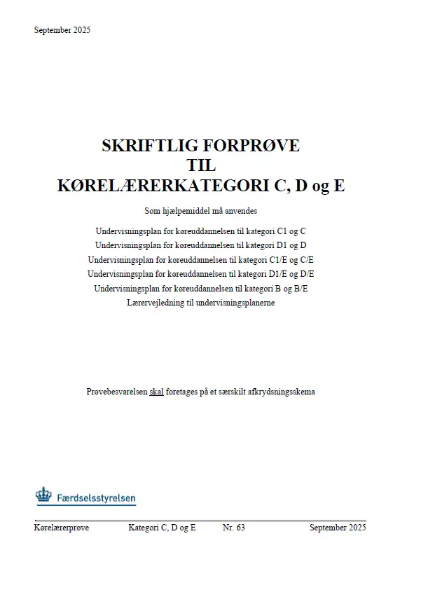 Forprøve til kørelæreruddannelsen - Kategori CDE - september 2025