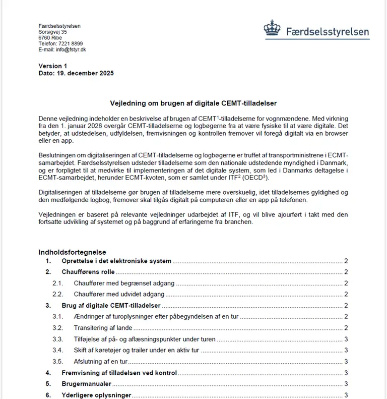 Vejledning til vognmænd om brug af digitale CEMT-tilladelser